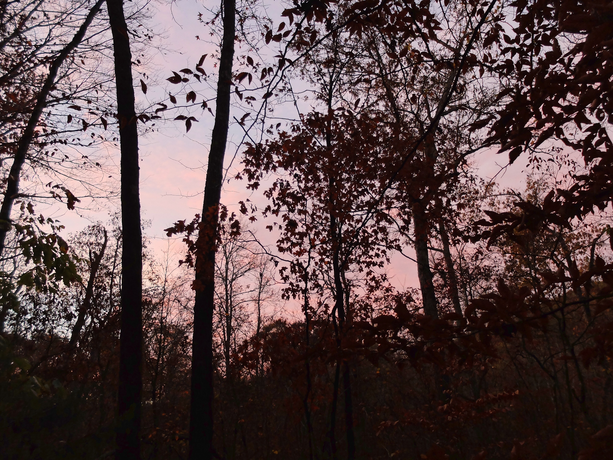 Pink clouds in a pale sky right before sunrise on Day 7