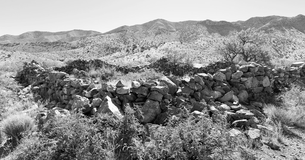 Below on the left, Conkling Dec. 1929 photo of station ruin at Dragoon Springs, Arizona, looking southeast. On the right, my April 2026 photo of the ruin from a similar angle, looking slightly more east.