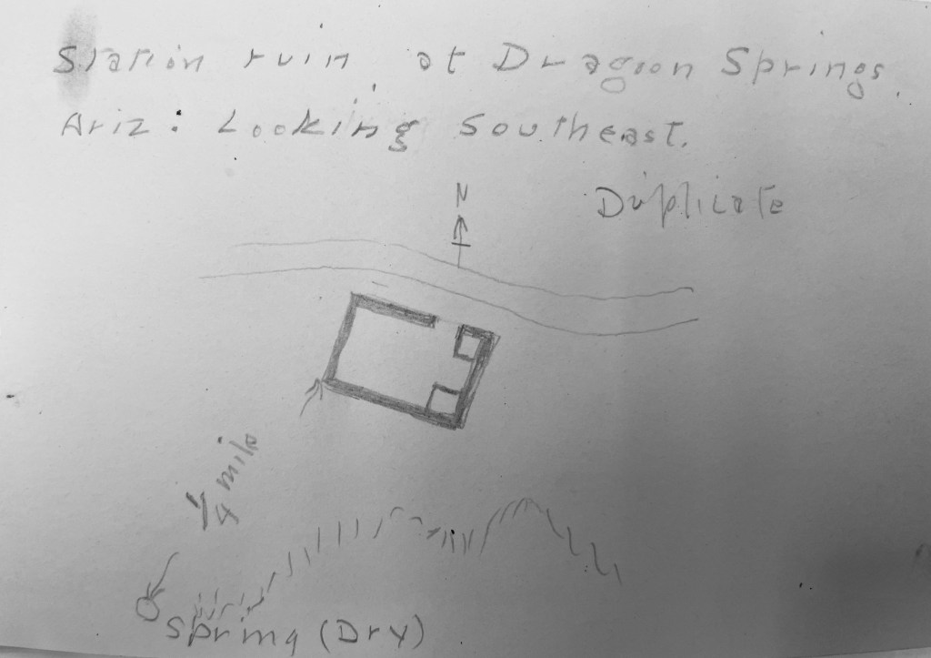 I visited the Dragoon Springs site in April, 2026 and was able to compare photos taken by Roscoe and Margaret Conkling in 1929 with the current state of the ruins, which have seen considerable deterioration over the past century but are still quite recognizable.