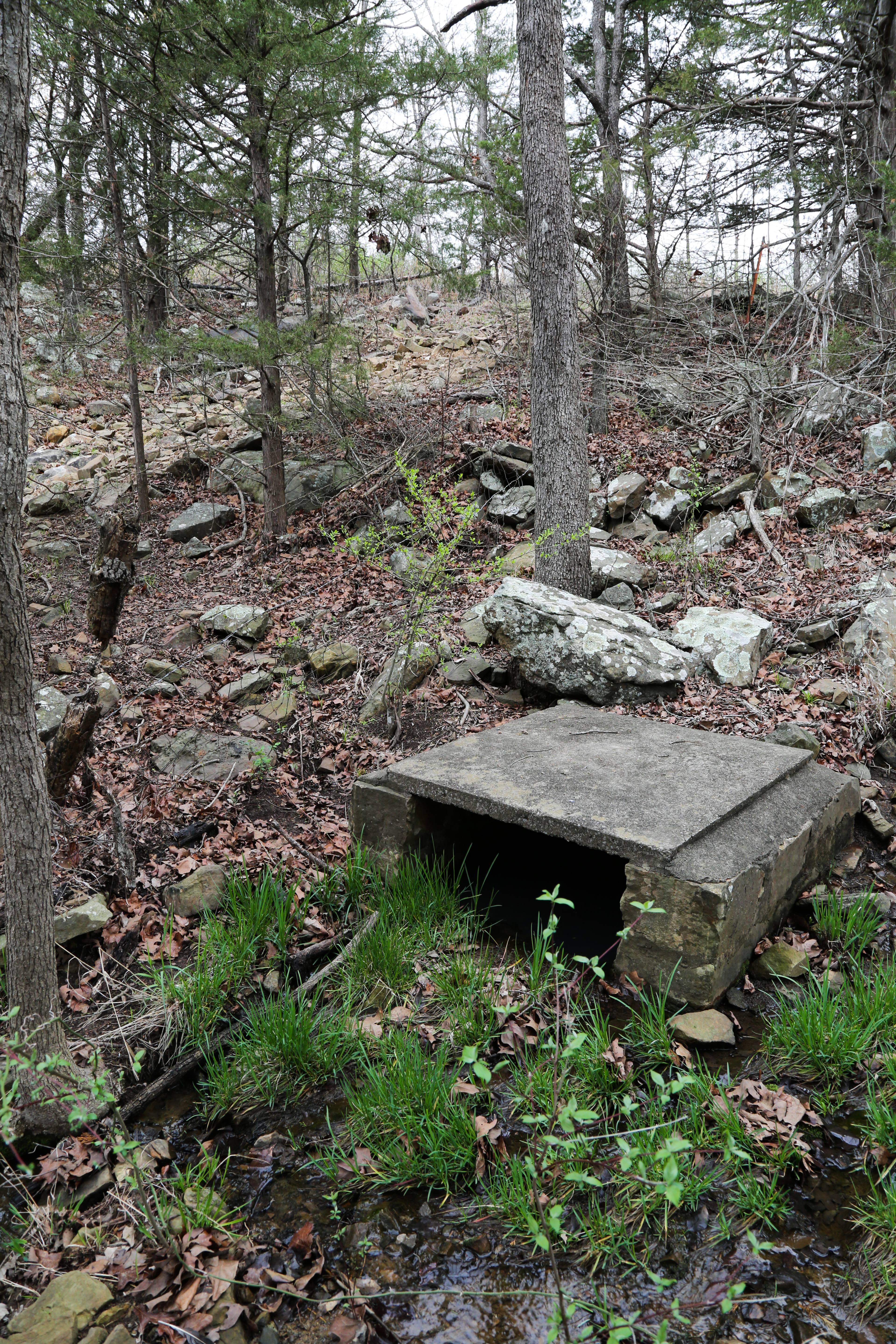 Sixty years later, I stand alone in the forest at the spring which served the Council House community. It was a “fine flowing spring of permanent water” when the Roscoe and Margaret Conkling, who wrote the definitive work on retracing the trail, observed Council House Spring. In 1958 it was “flowing copiously,” its walls covered with ferns, when the Oklahoma Historical Society’s committee came through, identifying station sites for placement of historical markers. Now in late November, clear water seeps through the fallen leaves of countless autumns in the spring’s shallow recess lined with cut stone. Down the bank in Brazil Creek, it mingles with run-off from other mountain springs and ethereal streams on a twisting journey northeast to the Poteau River. In 2018, it is more than a trickle but less than a flow. In May of the year, when the Committee reported its flow as copious, spring rains might even now make its volume more abundant.